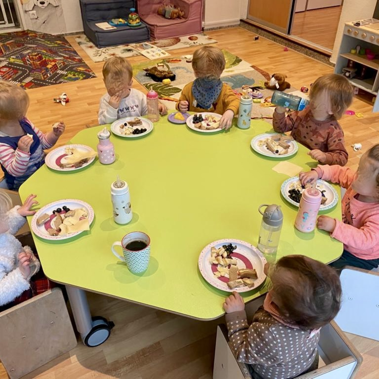 8.45 Uhr bis 9.00 Uhr - Begrüßung aller Kinder im Morgenkreis danach Freispiel